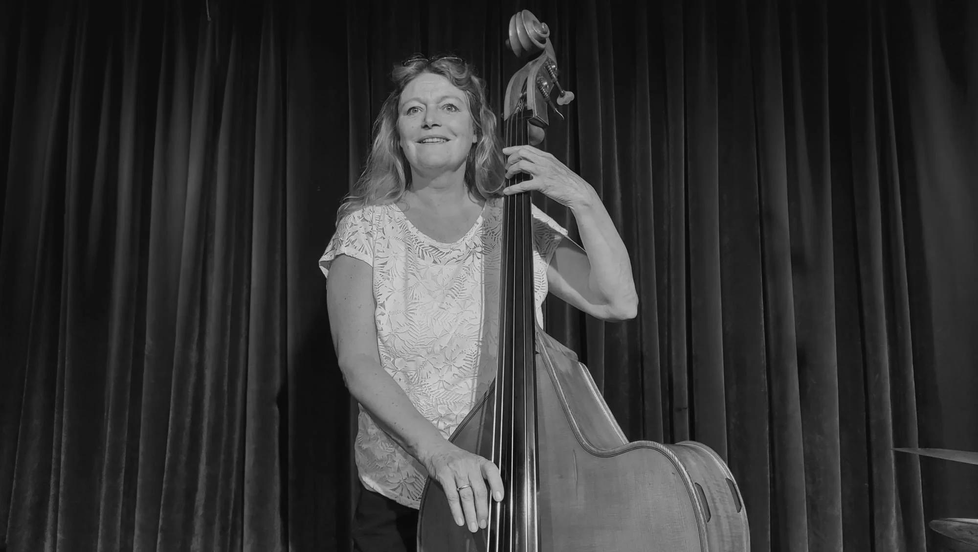 Hamburgs „First Bass Lady“ spielt seit Jahren mit Professionalität und Hingabe Kontrabass in verschiedenen Hamburger Bands. Ihre musikalische Heimat ist der Swing. Ihre Vorbilder sind Ray Brown und Oscar Pettiford. Bei Lukas Lindholm, NDR, verfeinerte sie ihre Spieltechnik.
